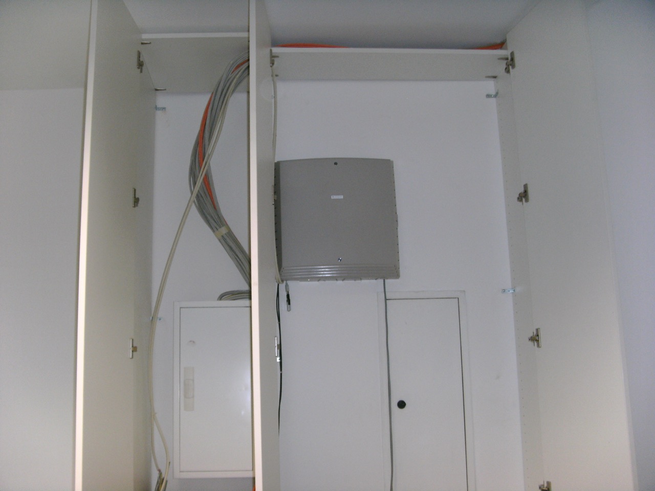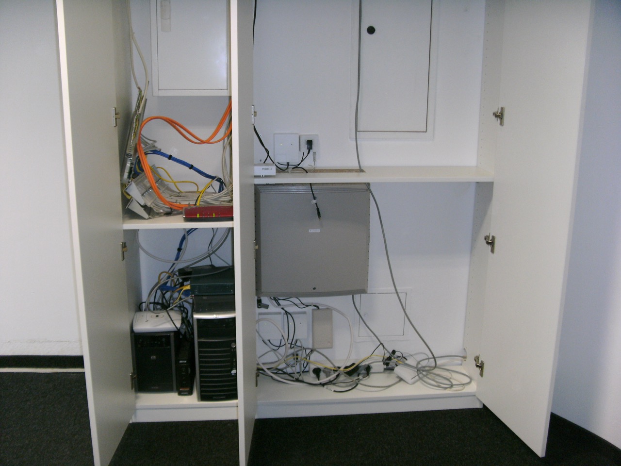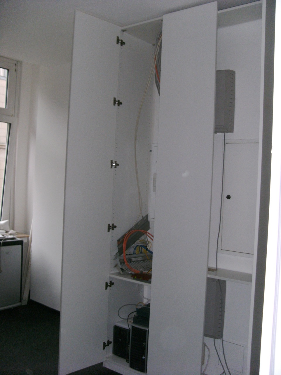 Beidseitige Regaltrennwand mit integrierten Schiebetüren