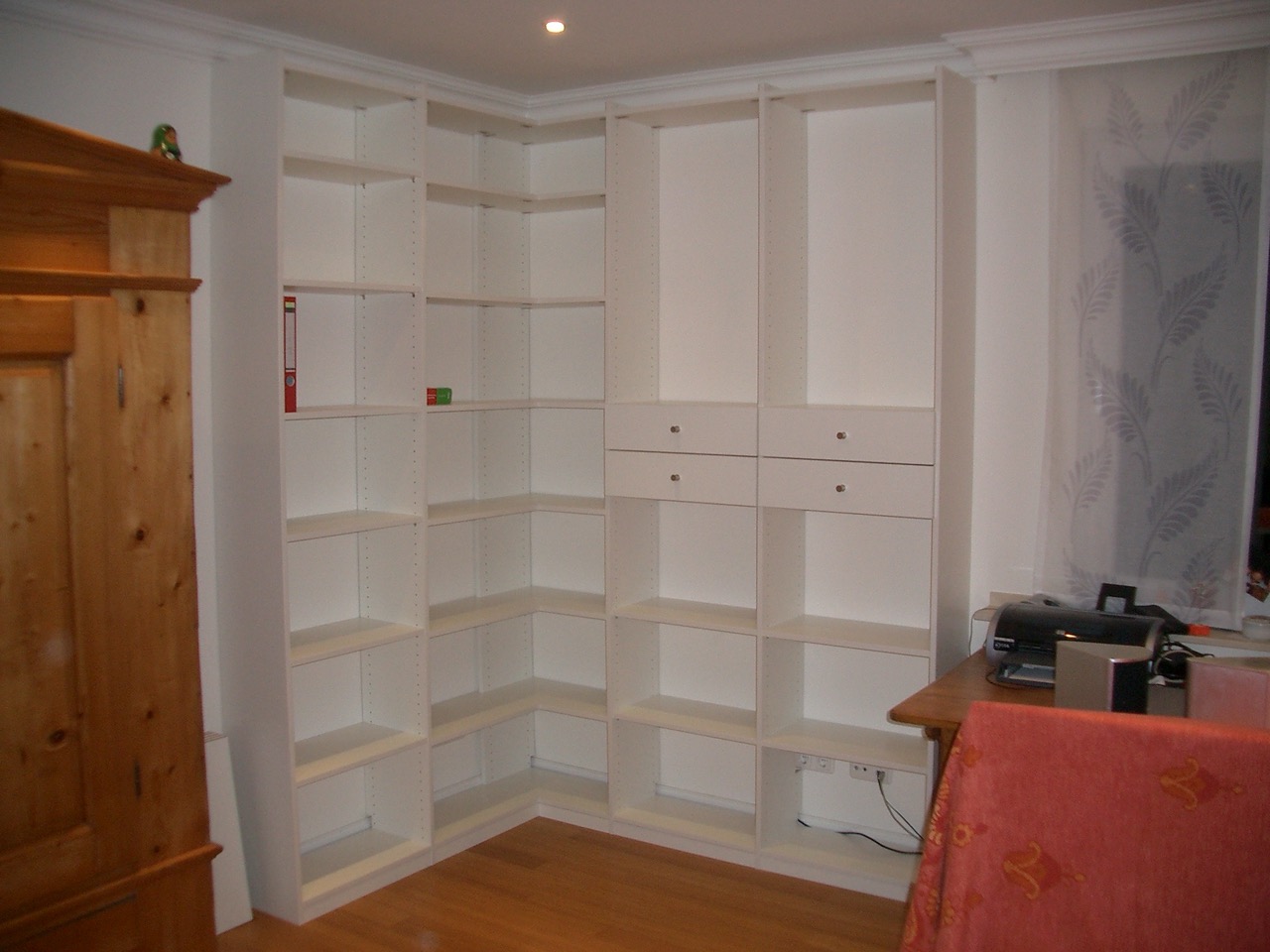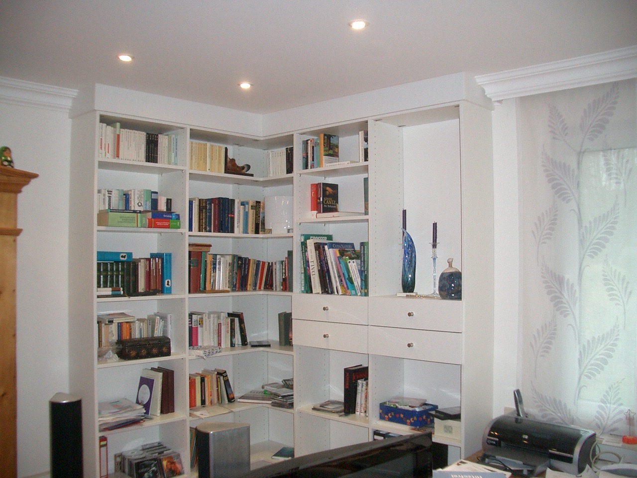 Beidseitige Regaltrennwand mit integrierten Schiebetüren