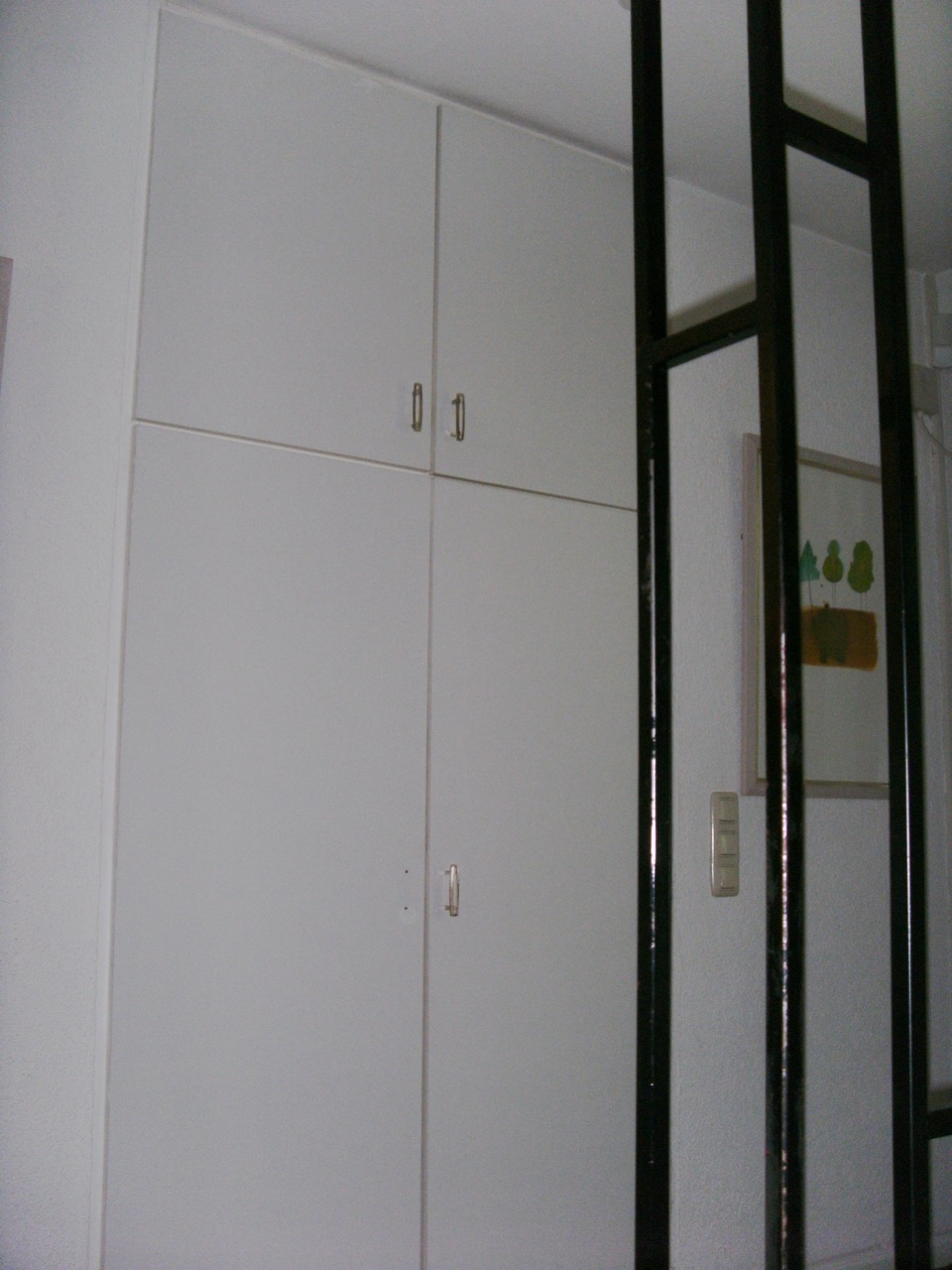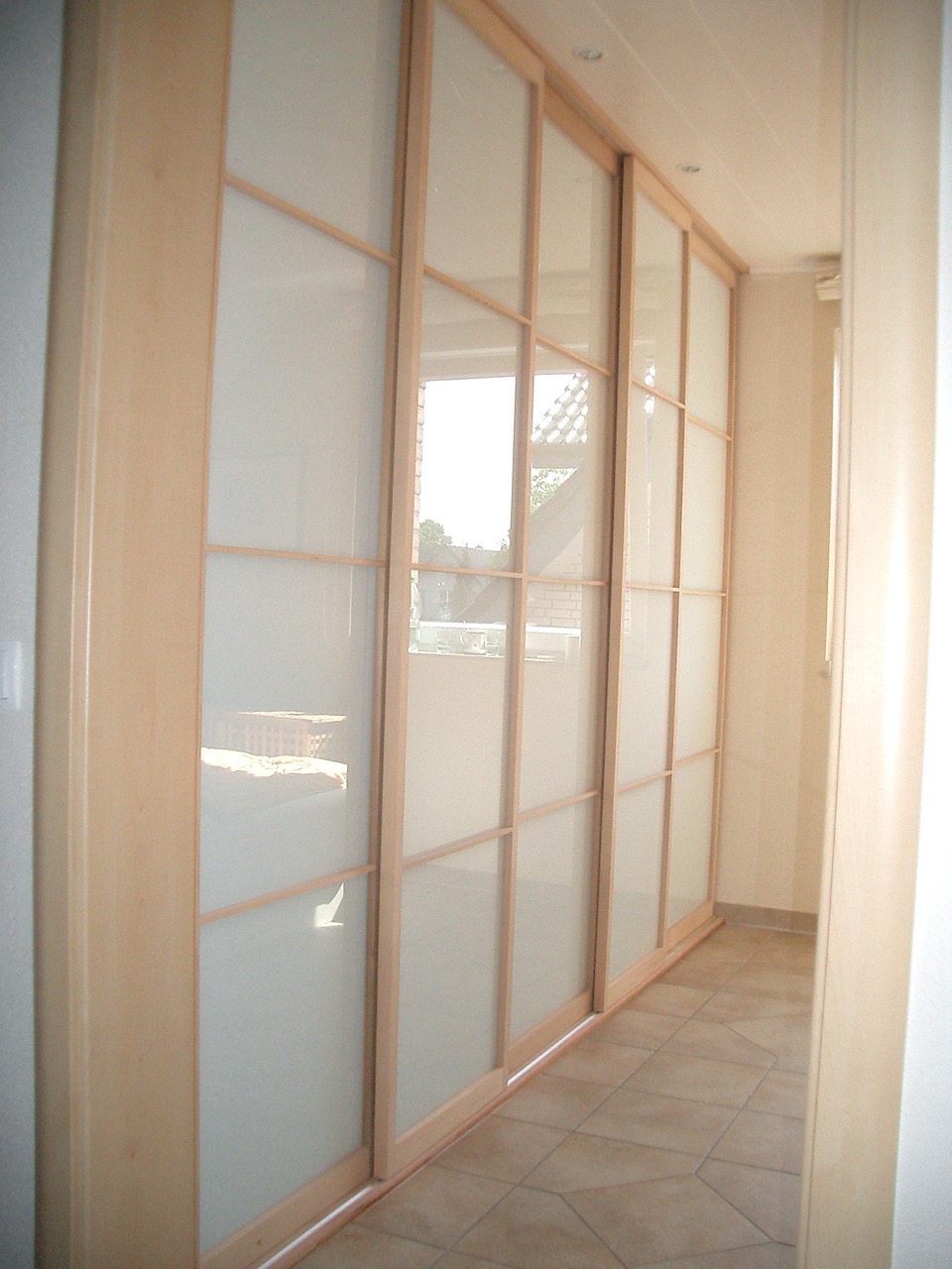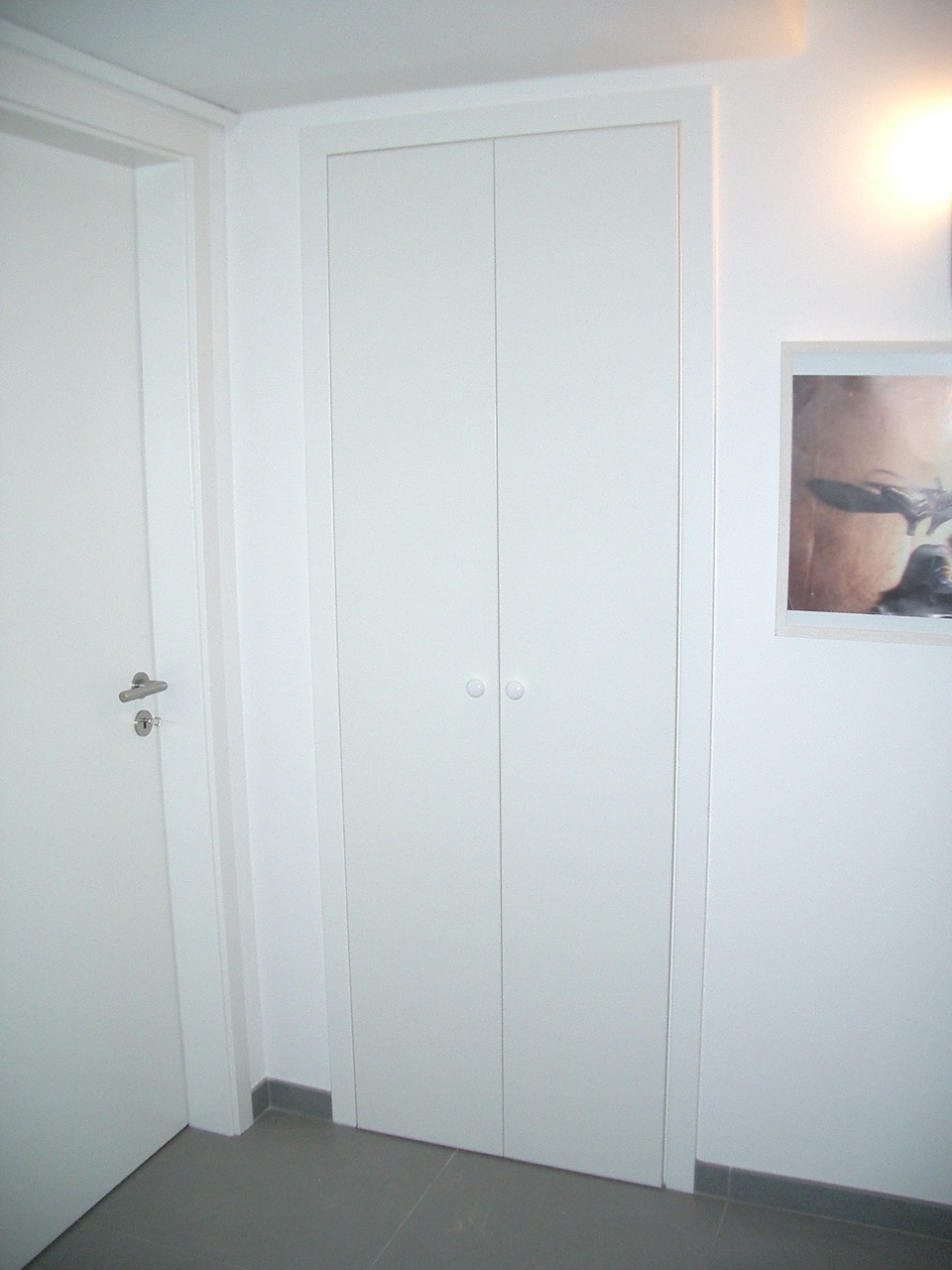 • Beidseitige Regaltrennwand mit integrierten Schiebetüren