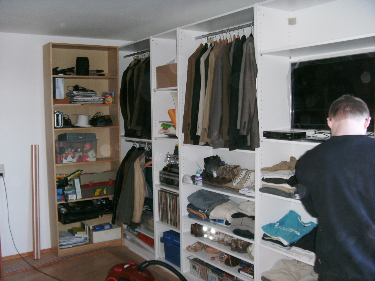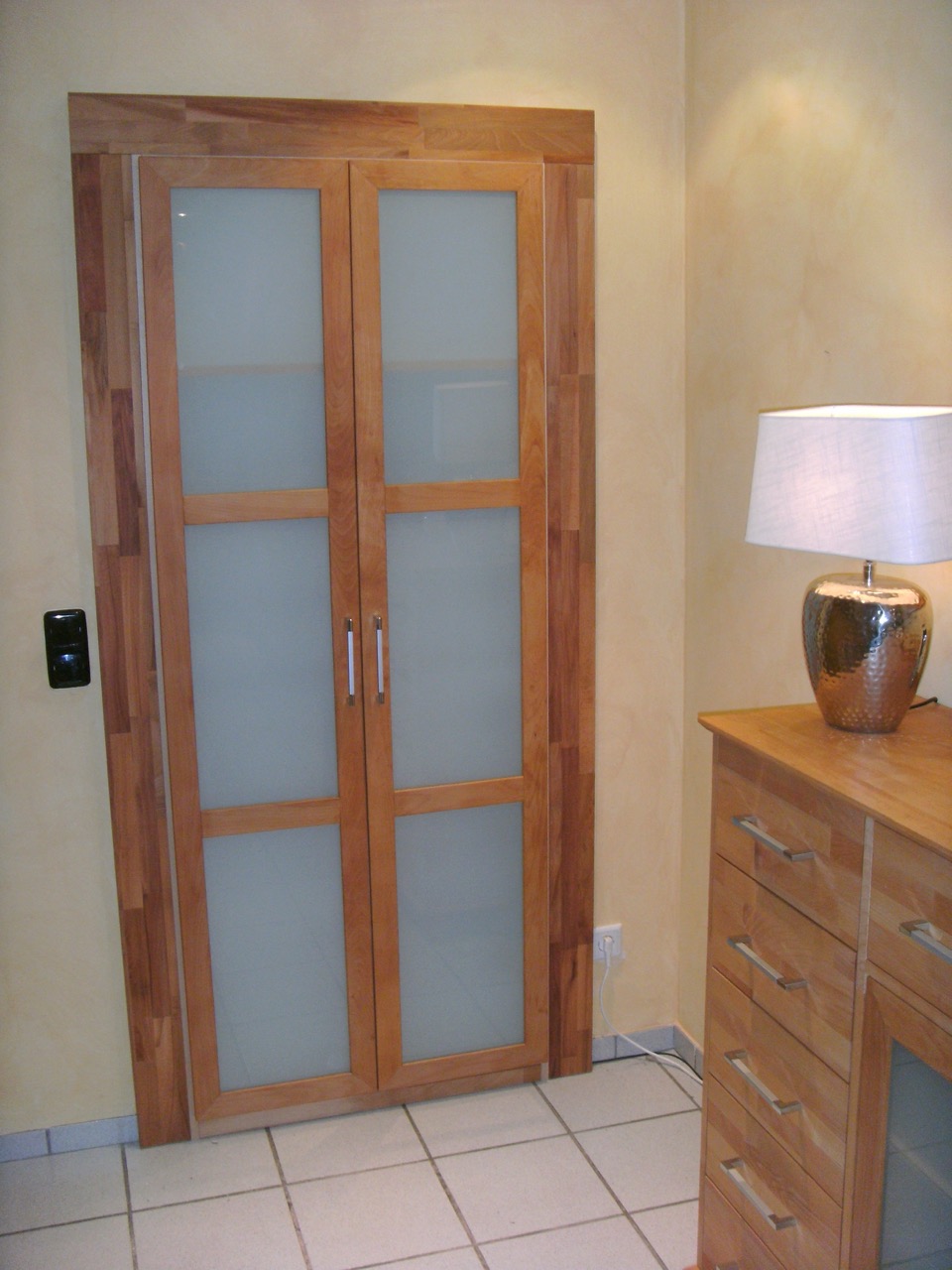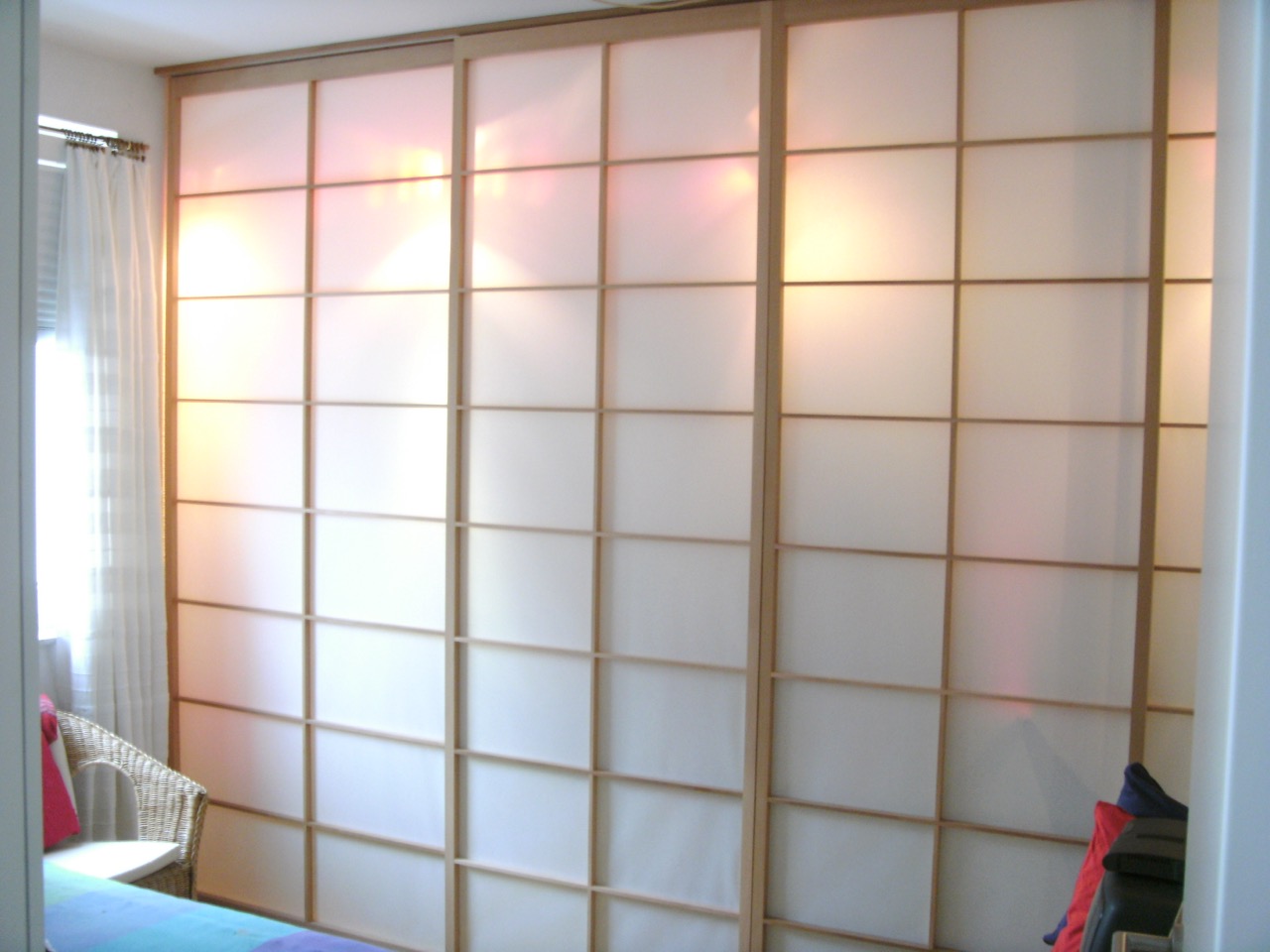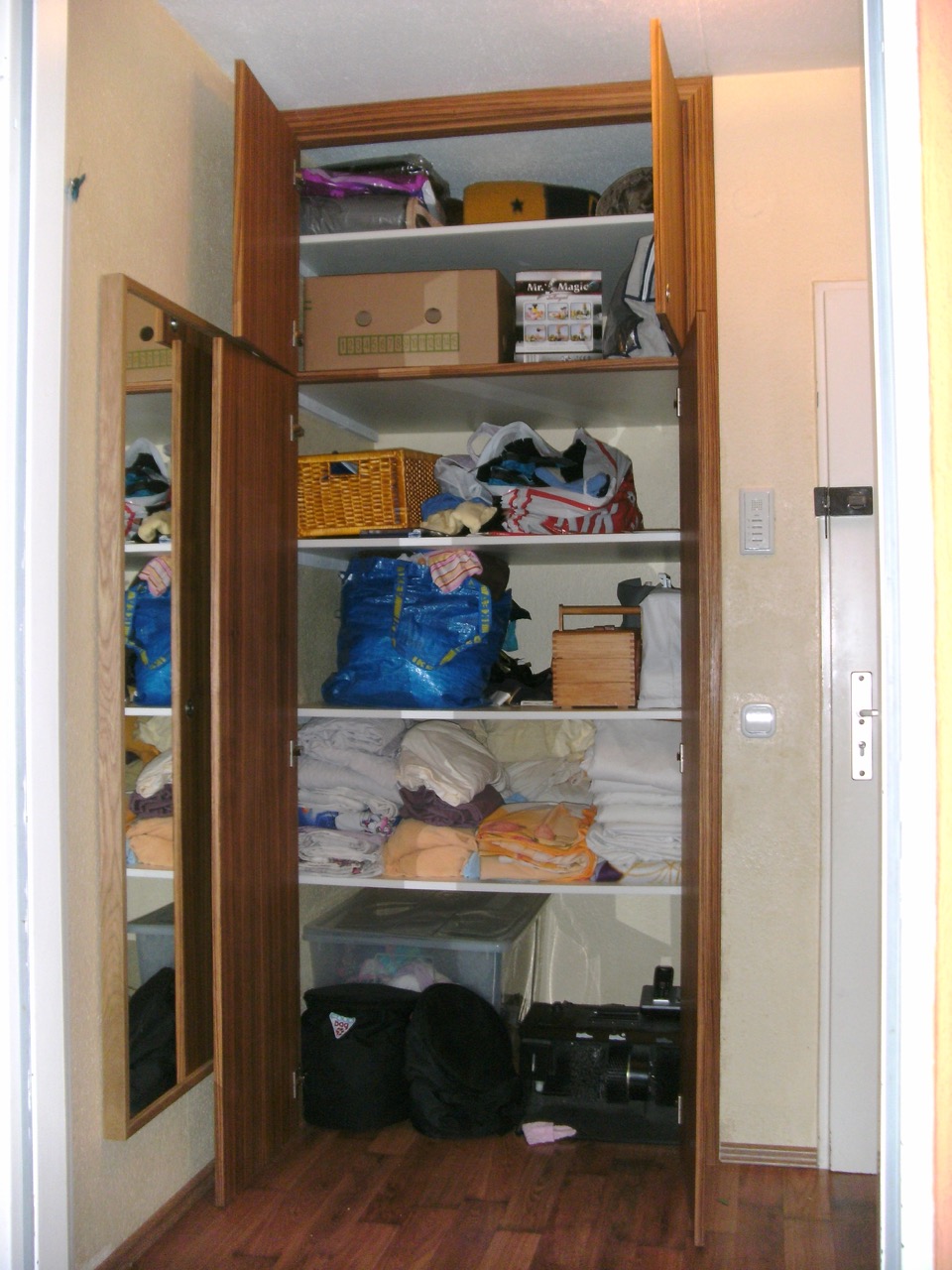 • Beidseitige Regaltrennwand mit integrierten Schiebetüren